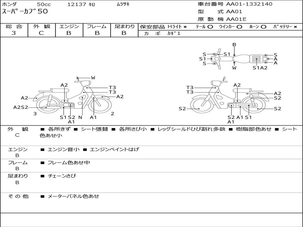 | Номер рамы / VIN | AA01-1332140 |
