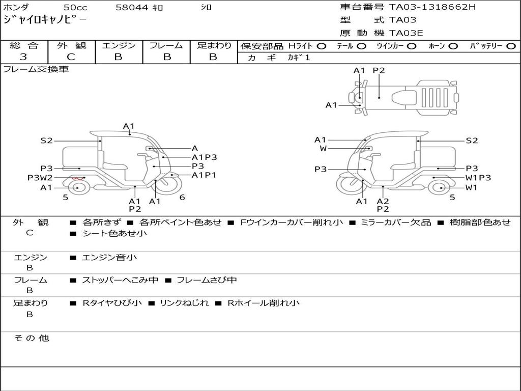 | Номер рамы / VIN | TA03-1318662H |
