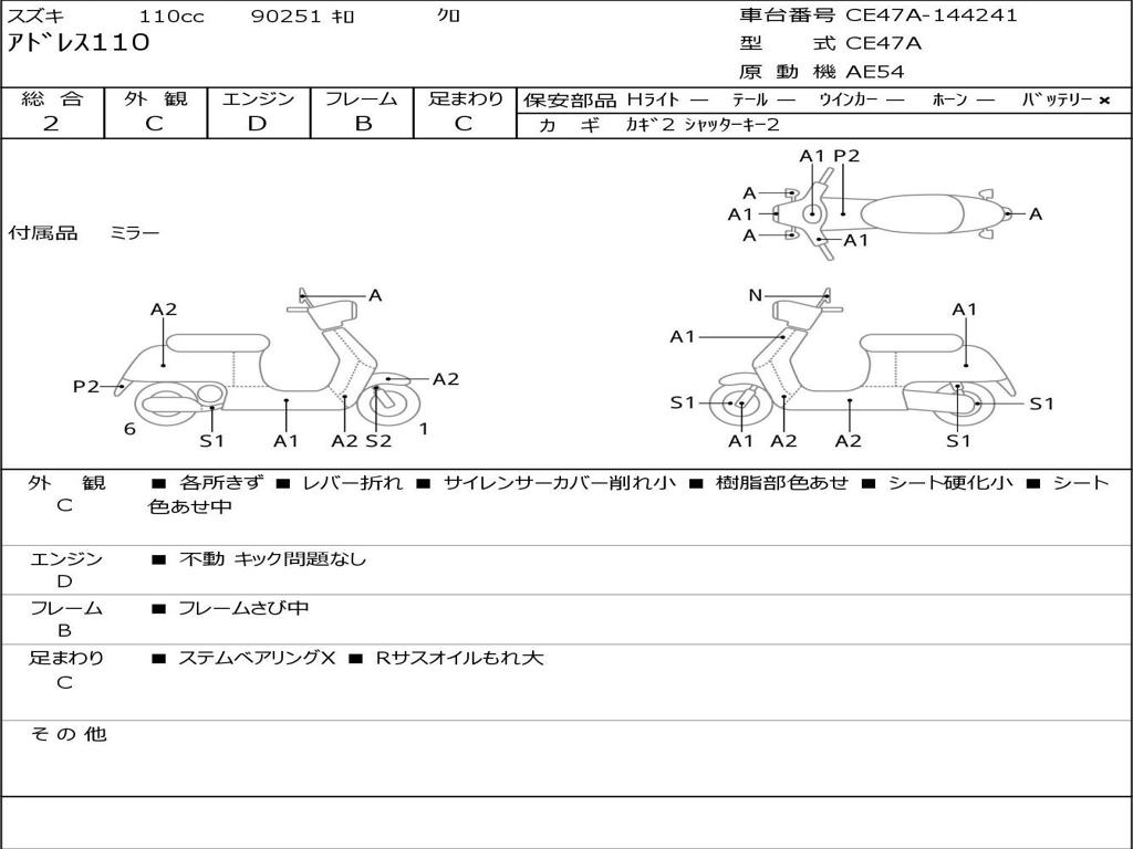 | Номер рамы / VIN | CE47A-144241 |