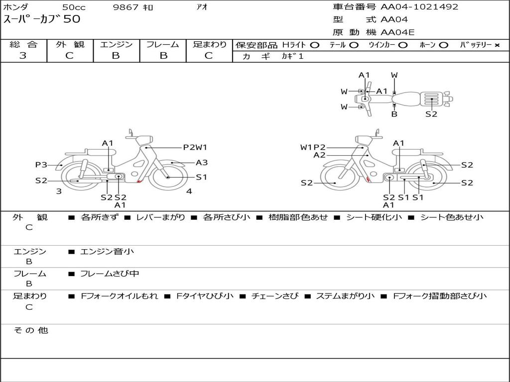 | Номер рамы / VIN | AA04-1021492 |