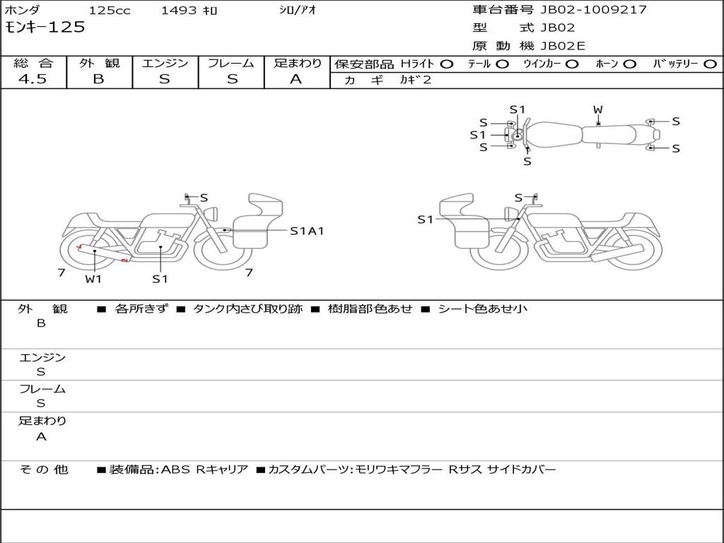 Номер рамы / VIN | JB02-1009217 |