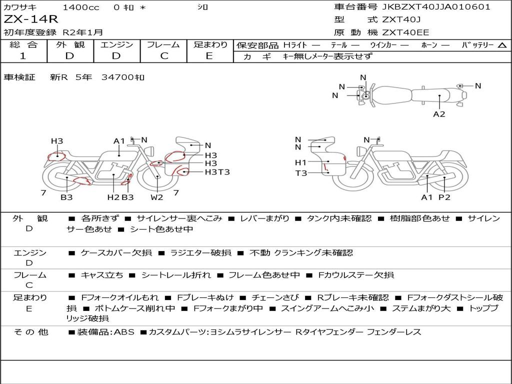 | Номер рамы / VIN | JKBZXT40JJA010601 |