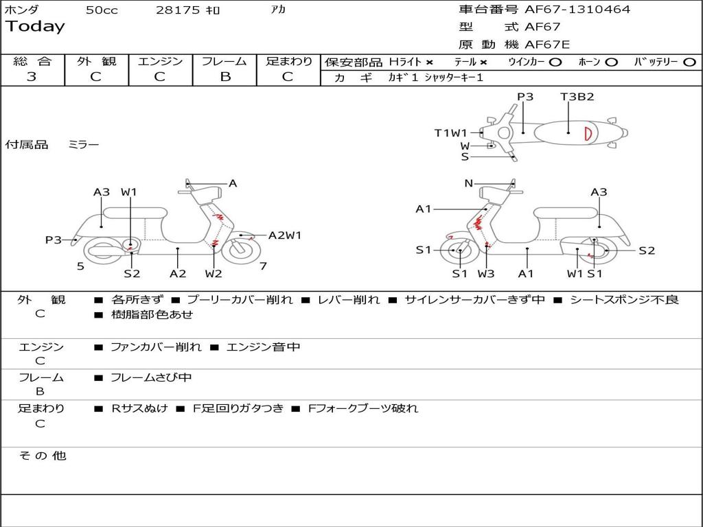 | Номер рамы / VIN | AF67-1310464 |