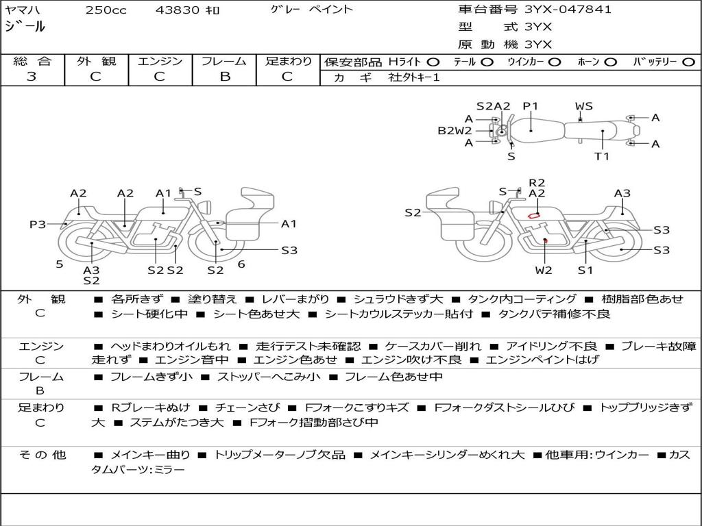 | Номер рамы / VIN | 3YX-047841 |
