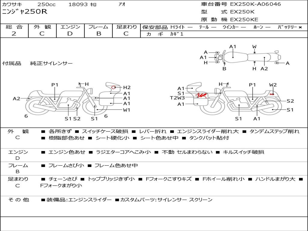 | Номер рамы / VIN | EX250K-A06046 |