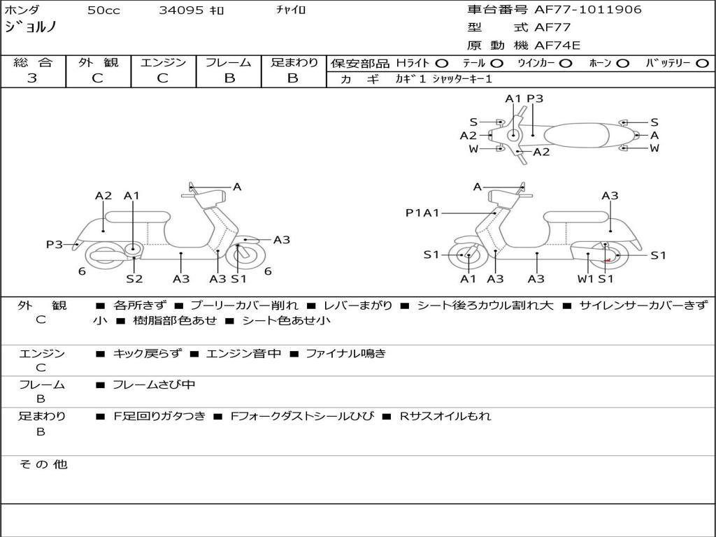 | Номер рамы / VIN | AF77-1011906 |