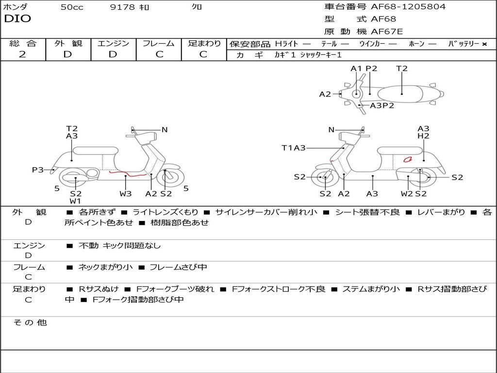 | Номер рамы / VIN | AF68-1205804 |