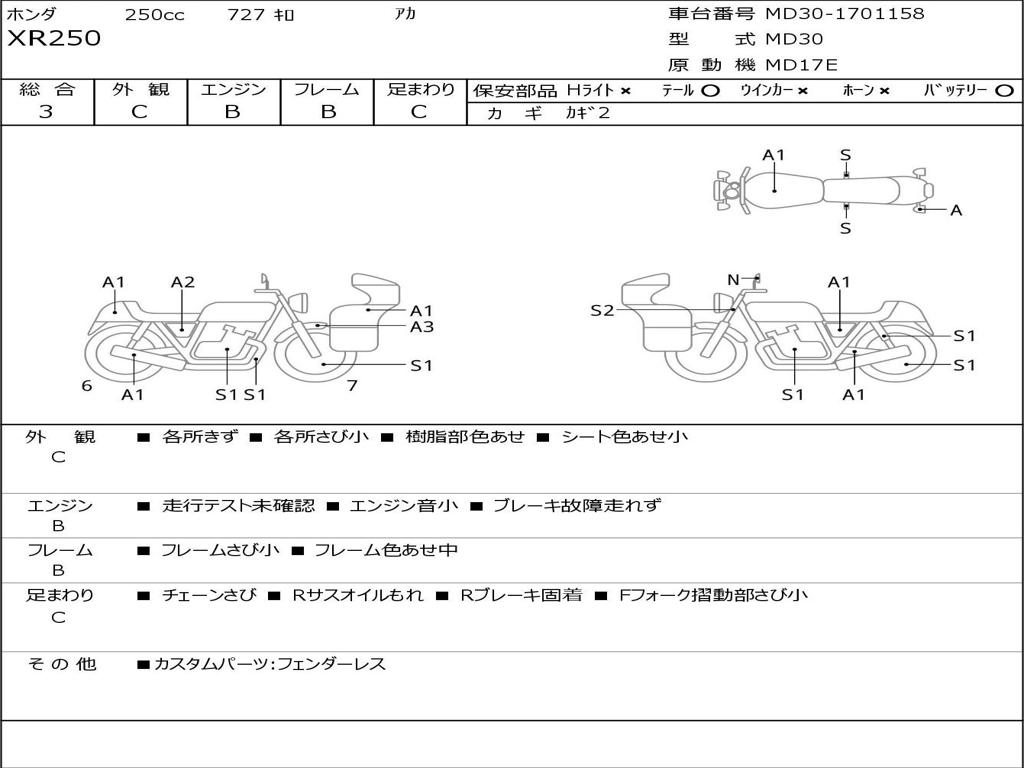 | Номер рамы / VIN | MD30-1701158 |
