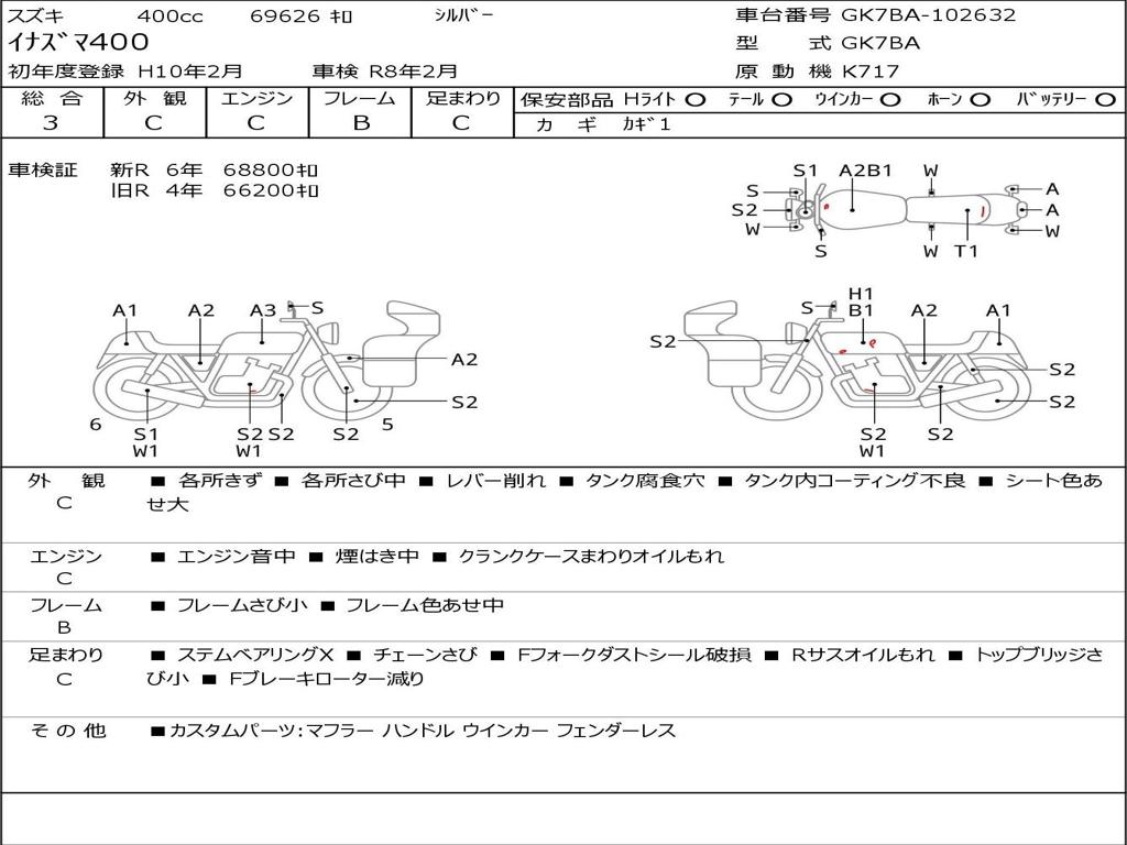 | Номер рамы / VIN | GK7BA-102632 |
