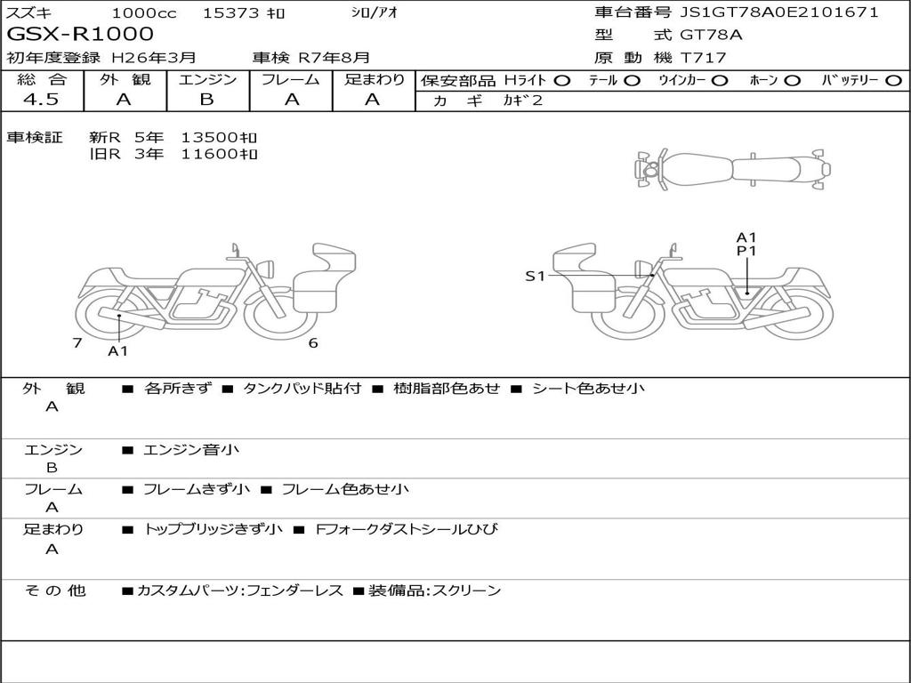 | Номер рамы / VIN | JS1GT78A0E2101671 |