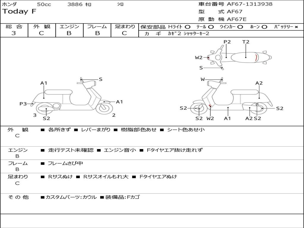 | Номер рамы / VIN | AF67-1313938 |