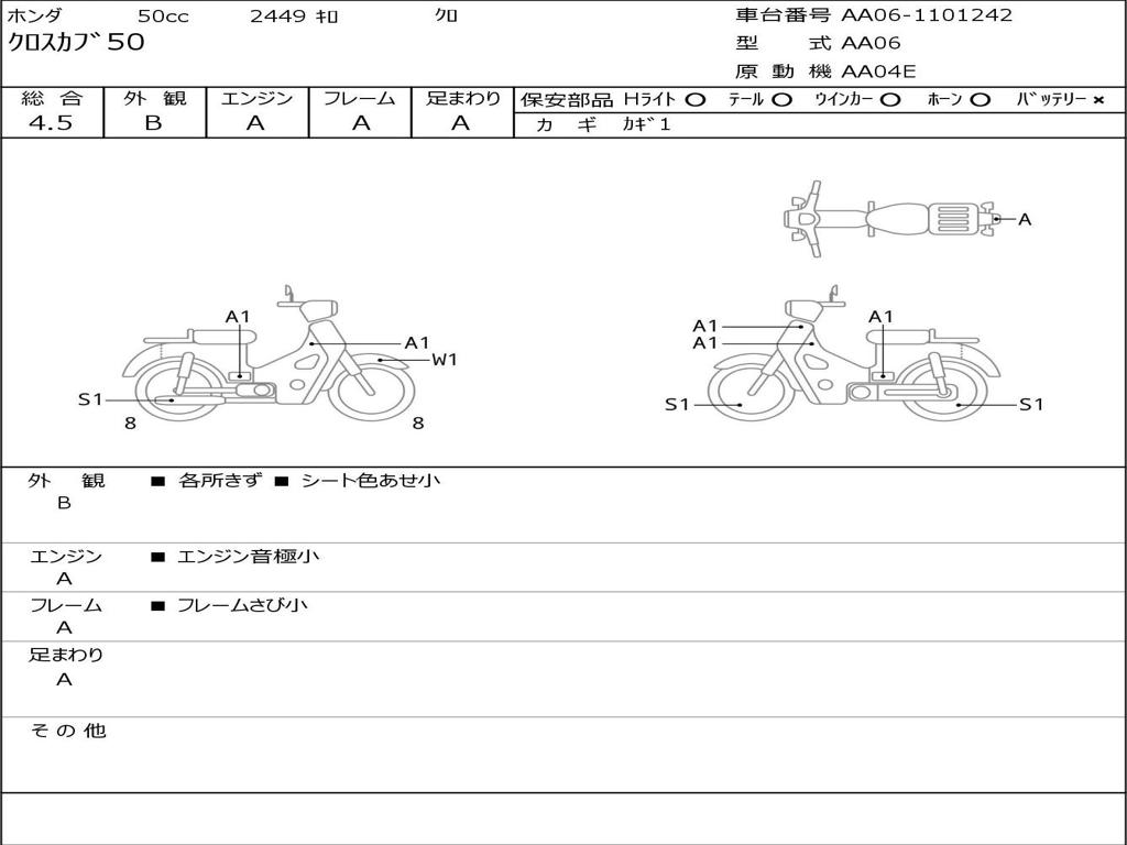 | Номер рамы / VIN | AA06-1101242 |