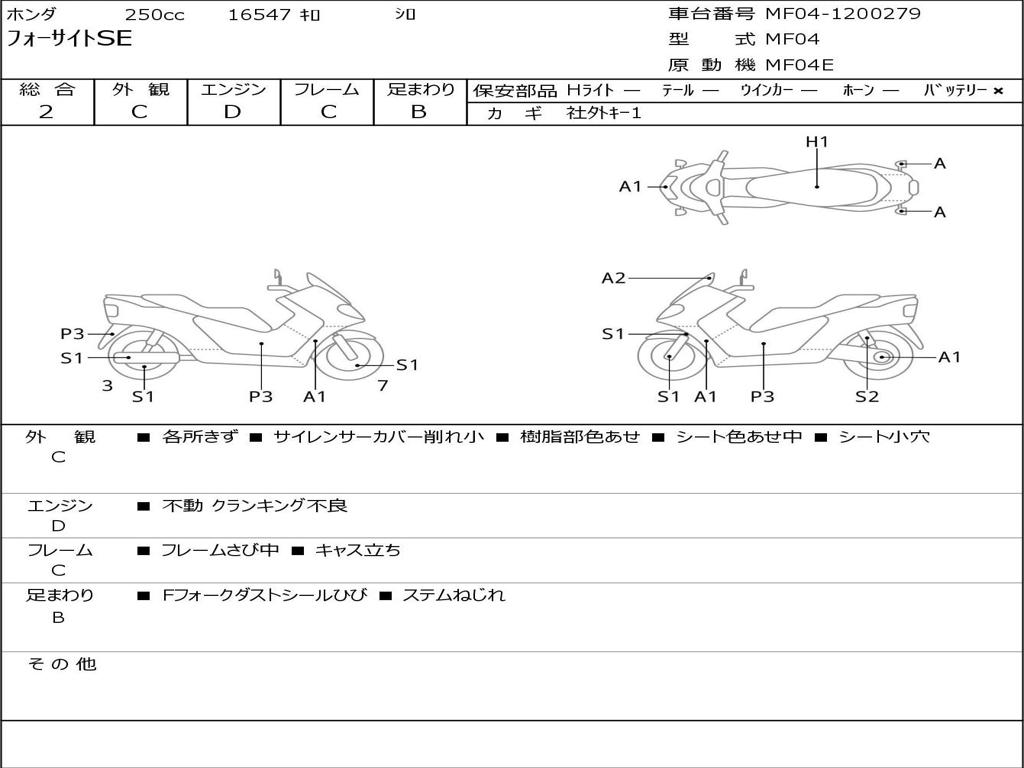 | Номер рамы / VIN | MF04-1200279 |