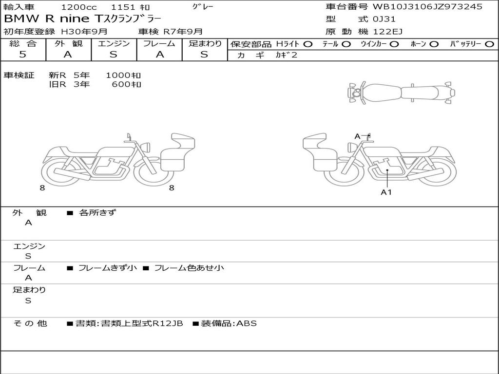 Номер рамы / VIN | WB10J3106JZ973245 |