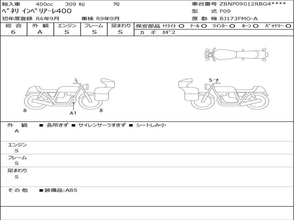 | Номер рамы / VIN | ZBNP09012RBG40012 |