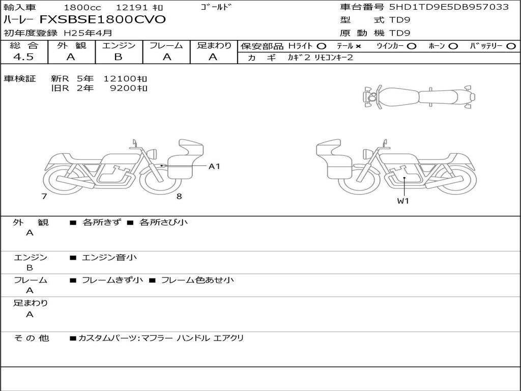 | Номер рамы / VIN | 5HD1TD9E5DB957033 |