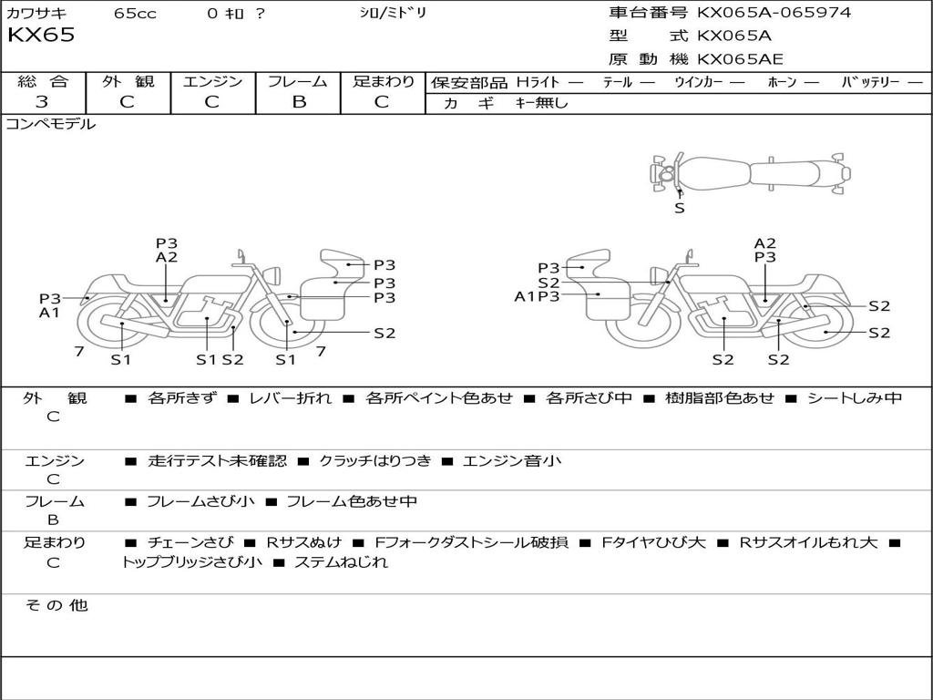 Номер рамы / VIN | KX065A-065974 |