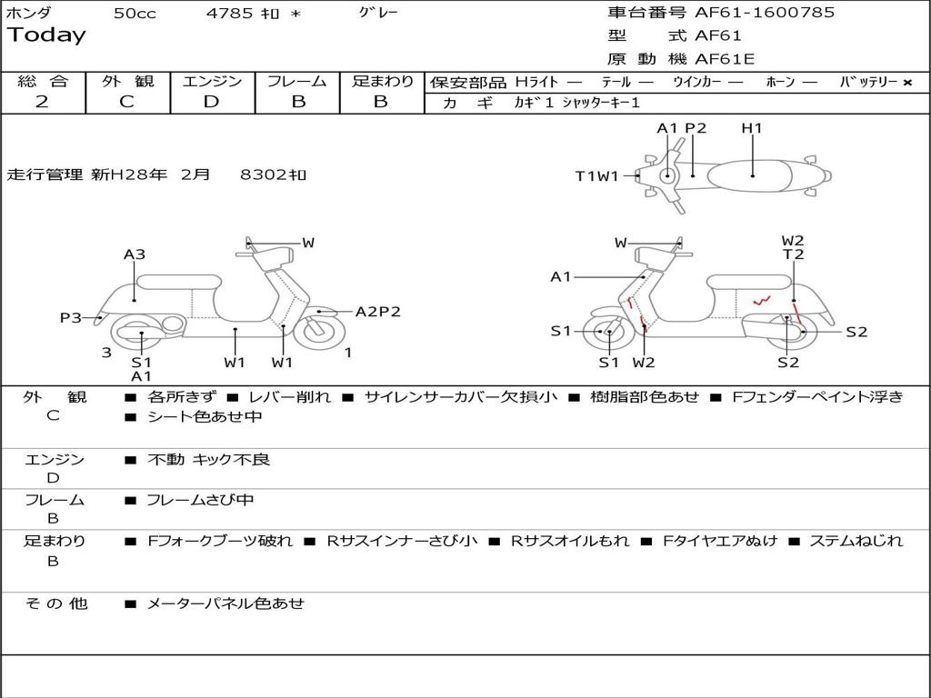 | Номер рамы / VIN | AF61-1600785 |