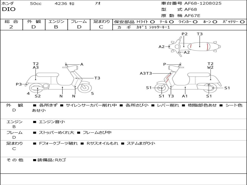 | Номер рамы / VIN | AF68-1208025 |