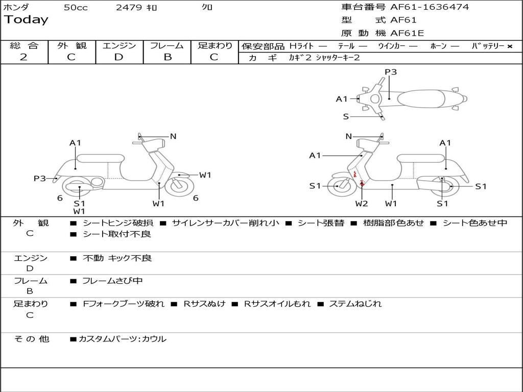 | Номер рамы / VIN | AF61-1636474 |