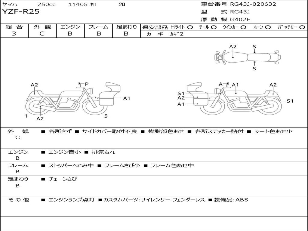 | Номер рамы / VIN | RG43J-020632 |