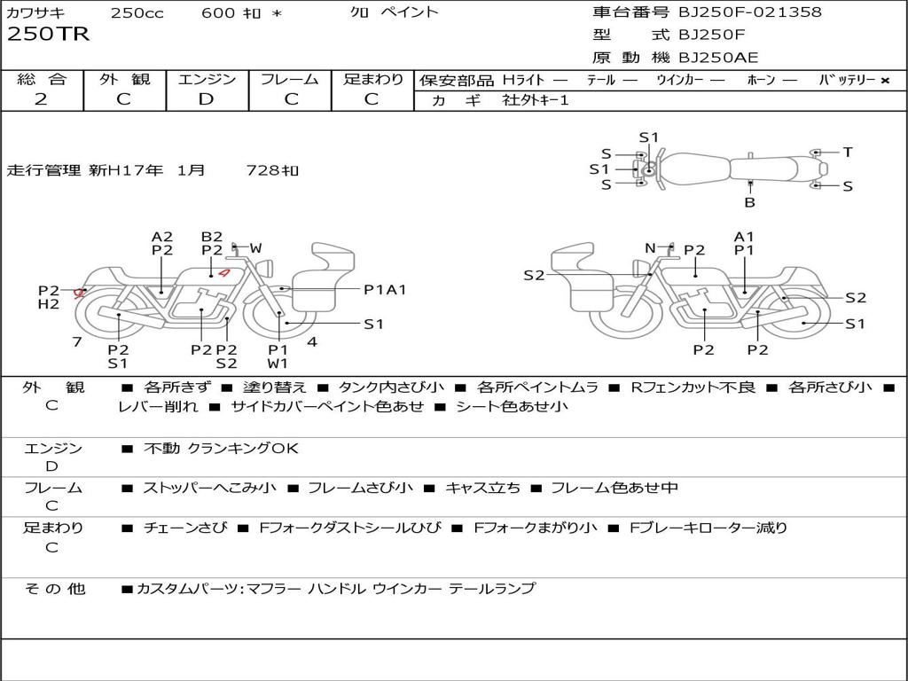 | Номер рамы / VIN | BJ250F-021358 |