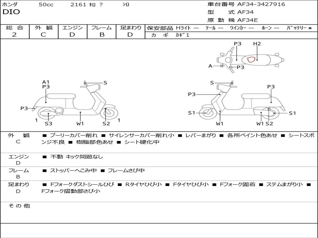 | Номер рамы / VIN | AF34-3427916 |