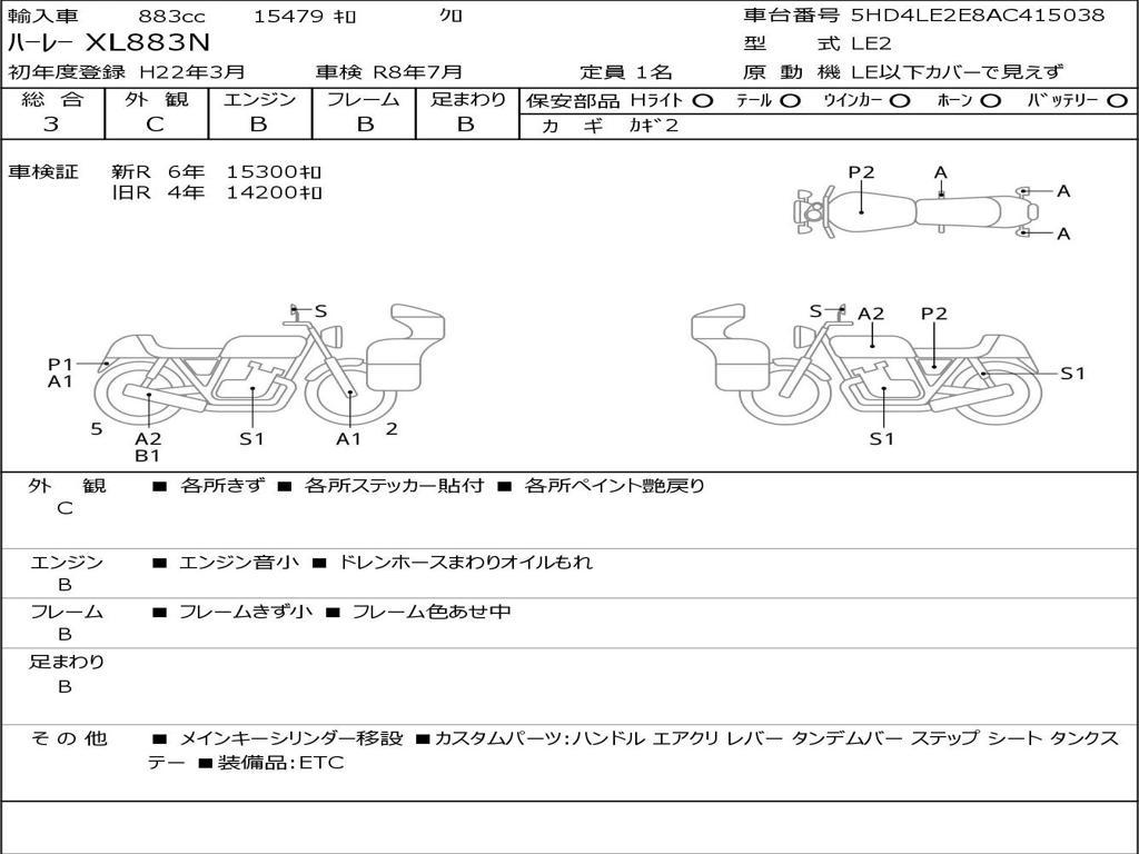 | Номер рамы / VIN | 5HD4LE2E8AC415038 |