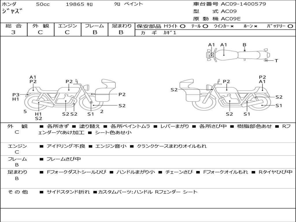 | Номер рамы / VIN | AC09-1400579 |