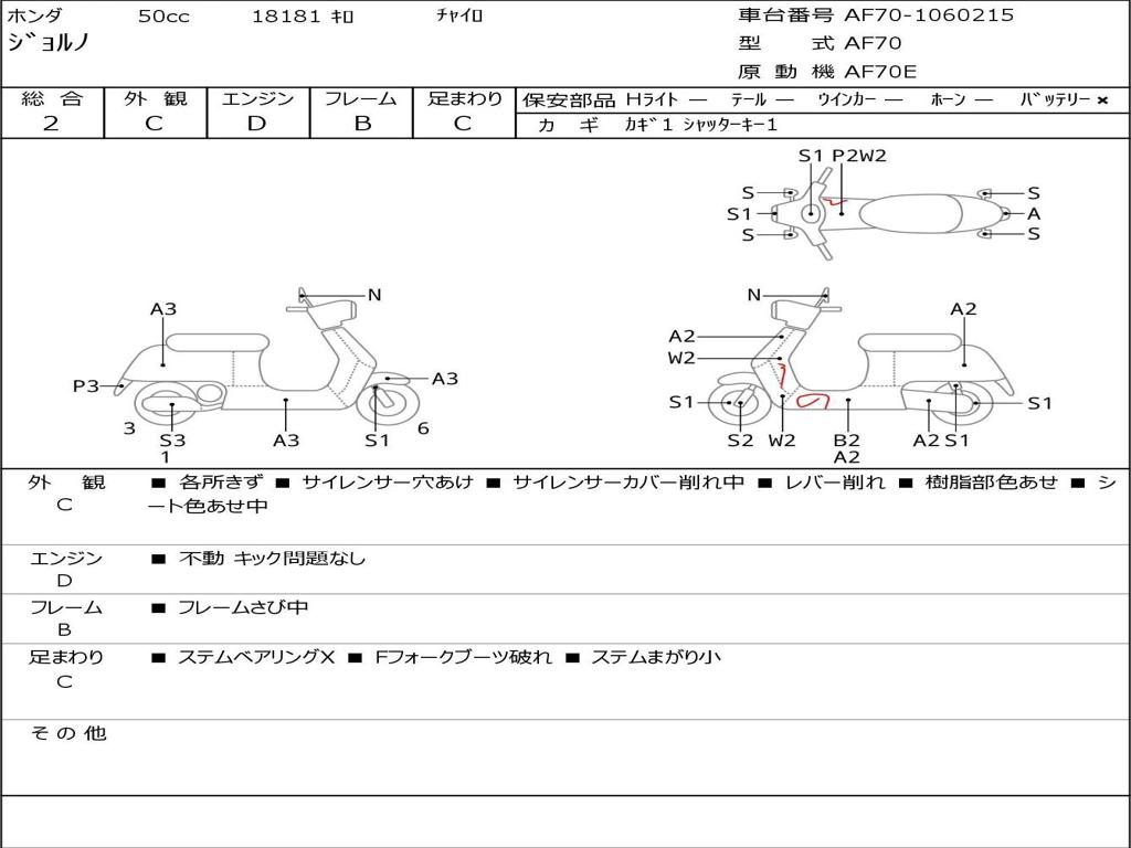 | Номер рамы / VIN | AF70-1060215 |