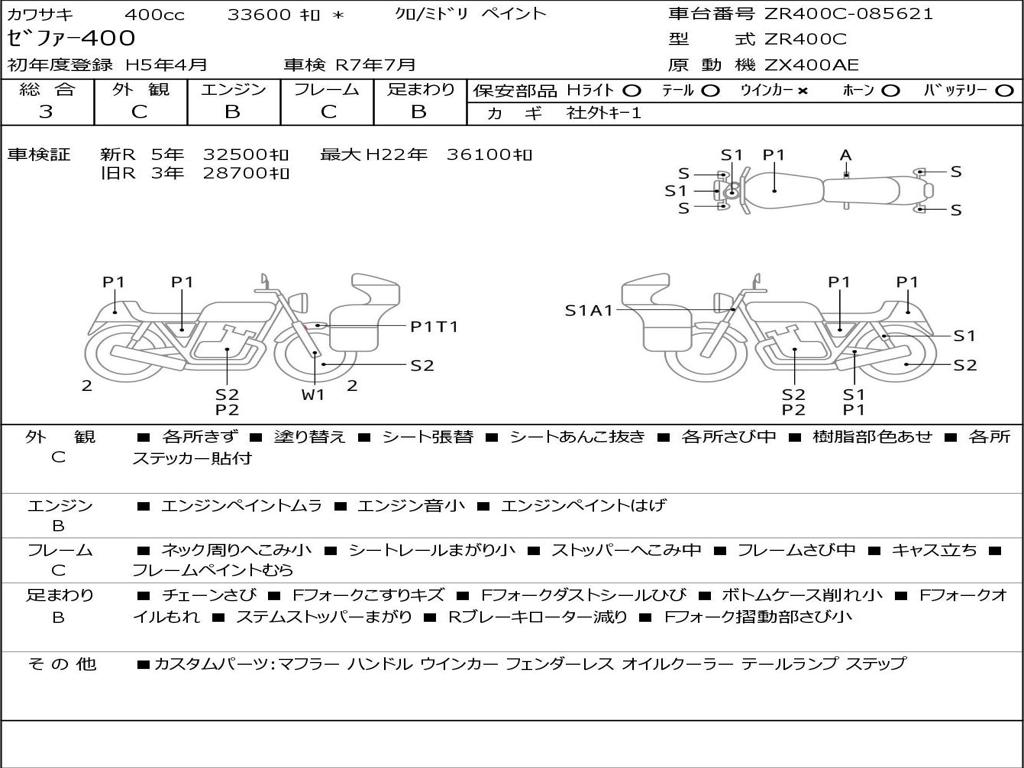 | Номер рамы / VIN | ZR400C-085621 |