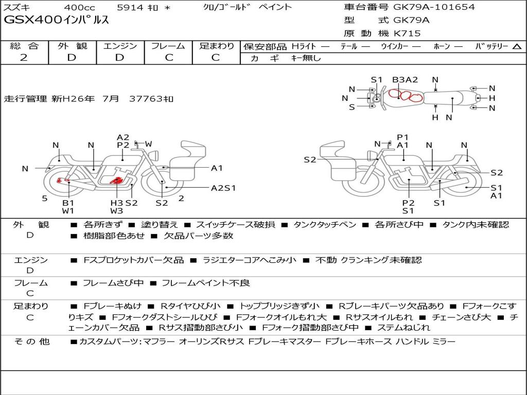 | Номер рамы / VIN | GK79A-101654 |