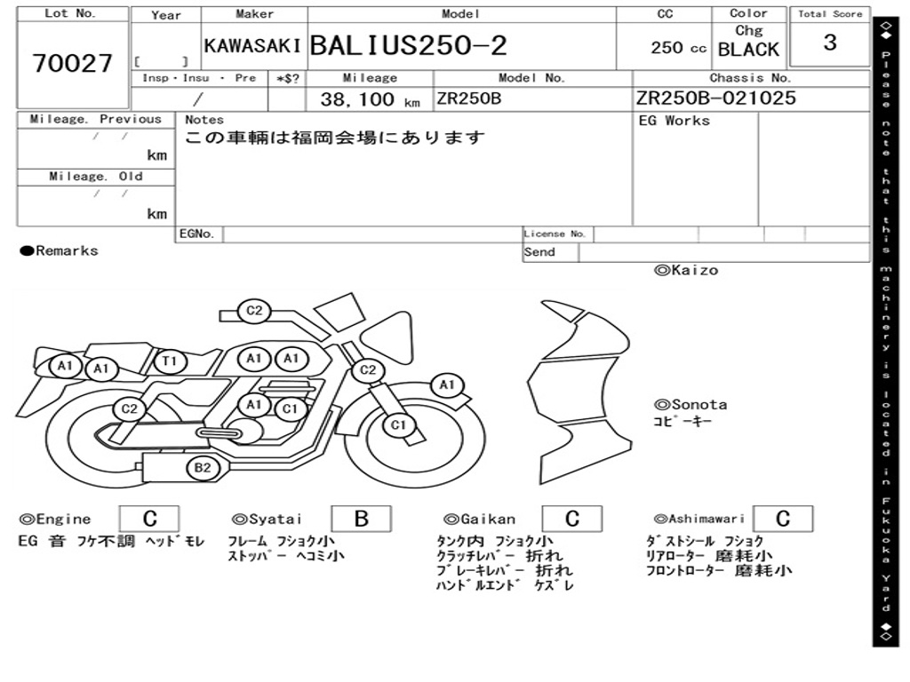 | Номер рамы / VIN | ZR250B-021025 |