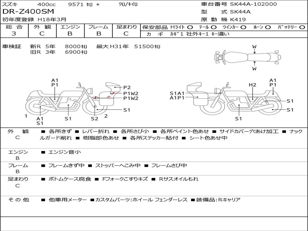 | Номер рамы / VIN | SK44A-102000 |