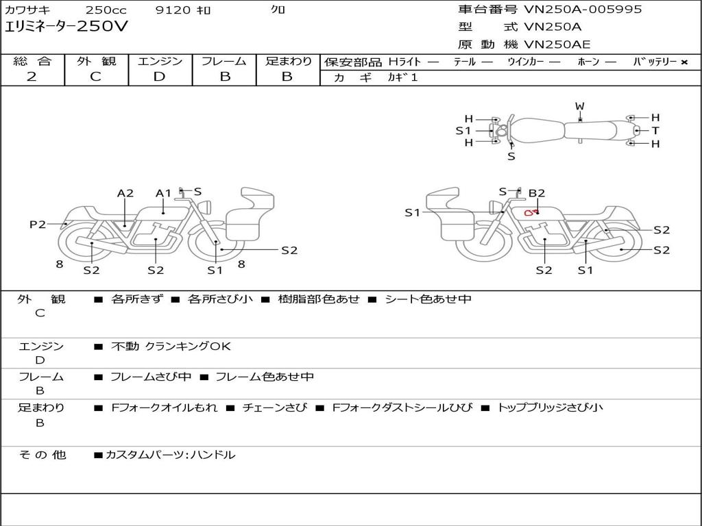 | Номер рамы / VIN | VN250A-005995 |