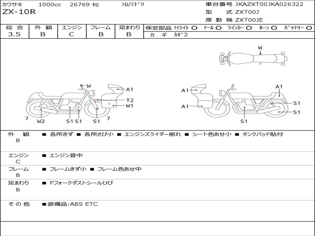 | Номер рамы / VIN | JKAZXT00JKA026322 |