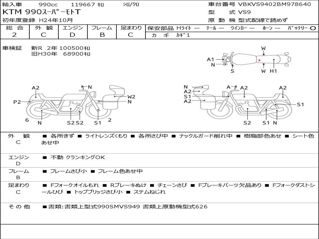 | Номер рамы / VIN | VBKVS9402BM978640 |