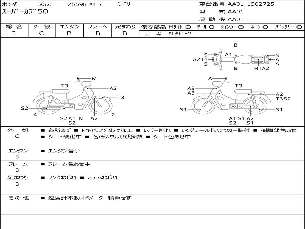 | Номер рамы / VIN | AA01-1502725 |
