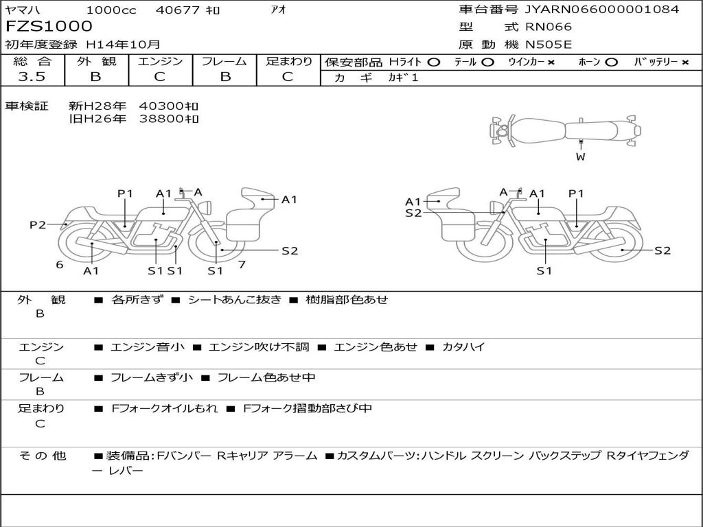 | Номер рамы / VIN | JYARN066000001084 |