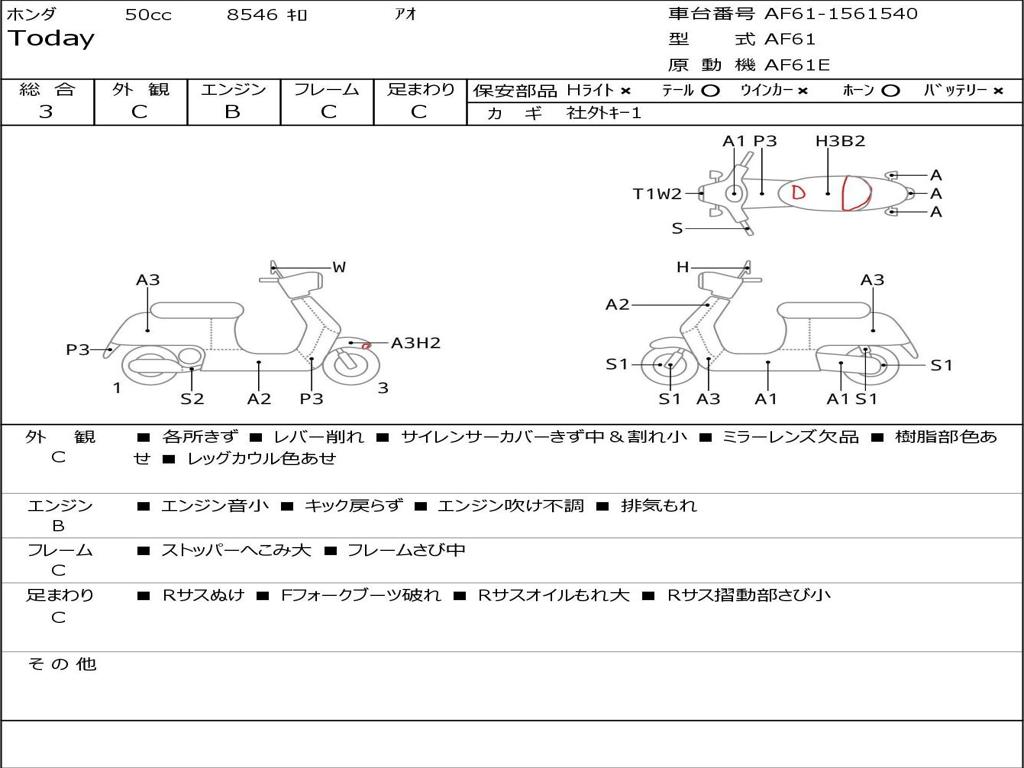 | Номер рамы / VIN | AF61-1561540 |