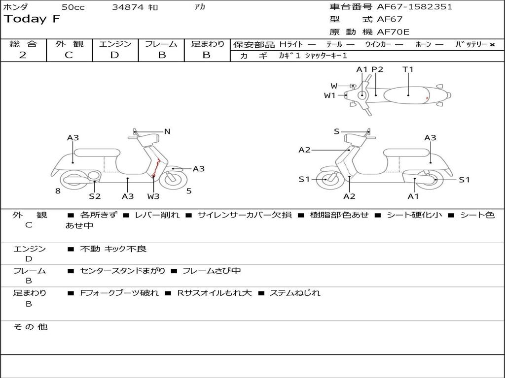 | Номер рамы / VIN | AF67-1582351 |