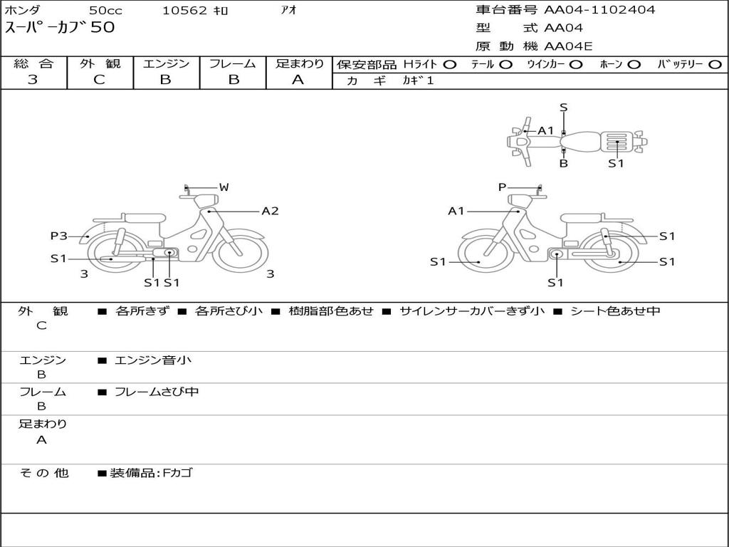 | Номер рамы / VIN | AA04-1102404 |