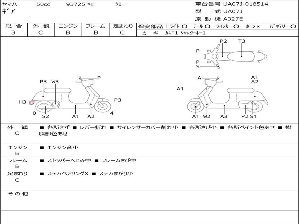 | Номер рамы / VIN | UA07J-018514 |