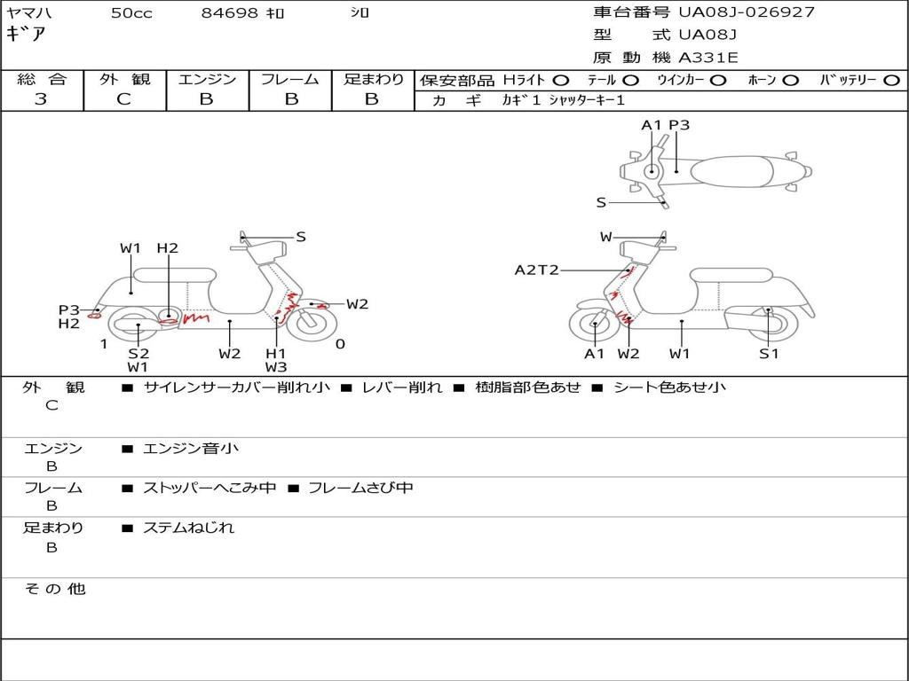 | Номер рамы / VIN | UA08J-026927 |