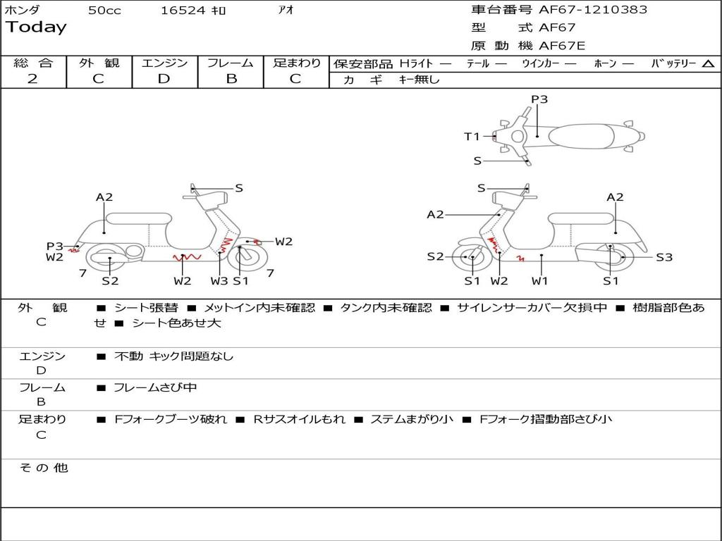 | Номер рамы / VIN | AF67-1210383 |
