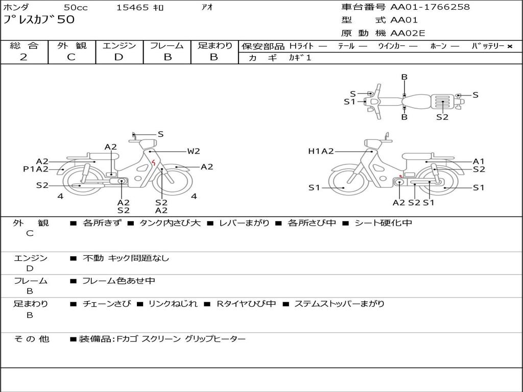 | Номер рамы / VIN | AA01-1766258 |