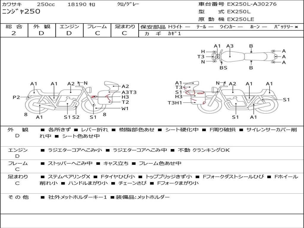 | Номер рамы / VIN | EX250L-A30276 |