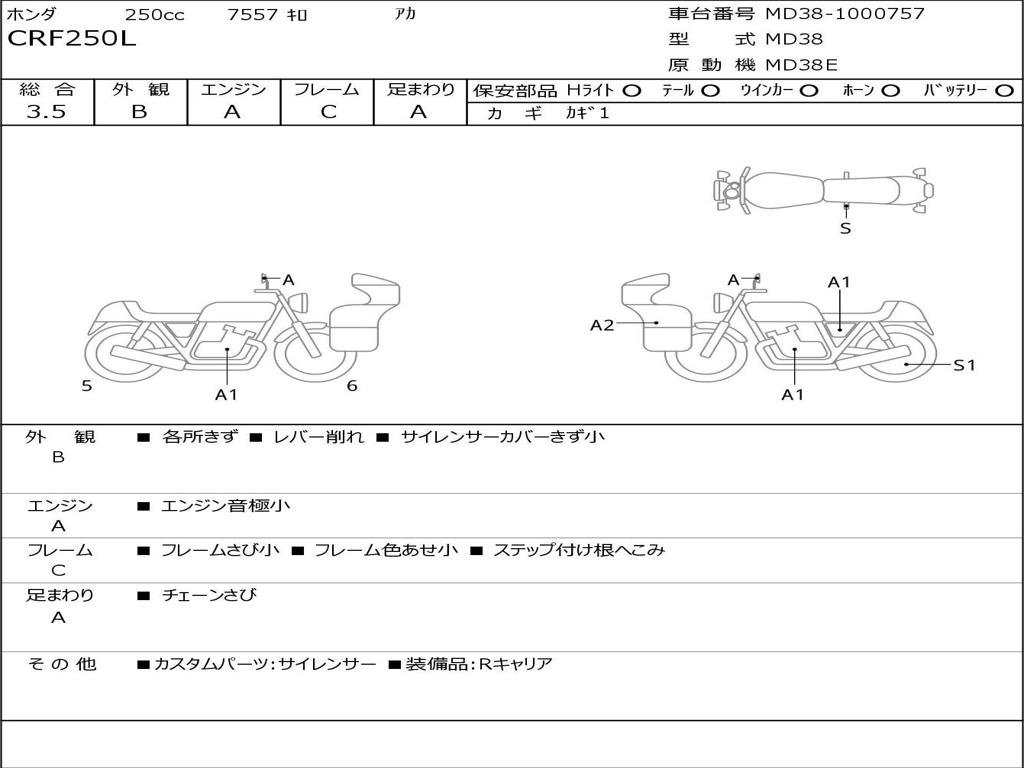 | Номер рамы / VIN | MD38-1000757 |