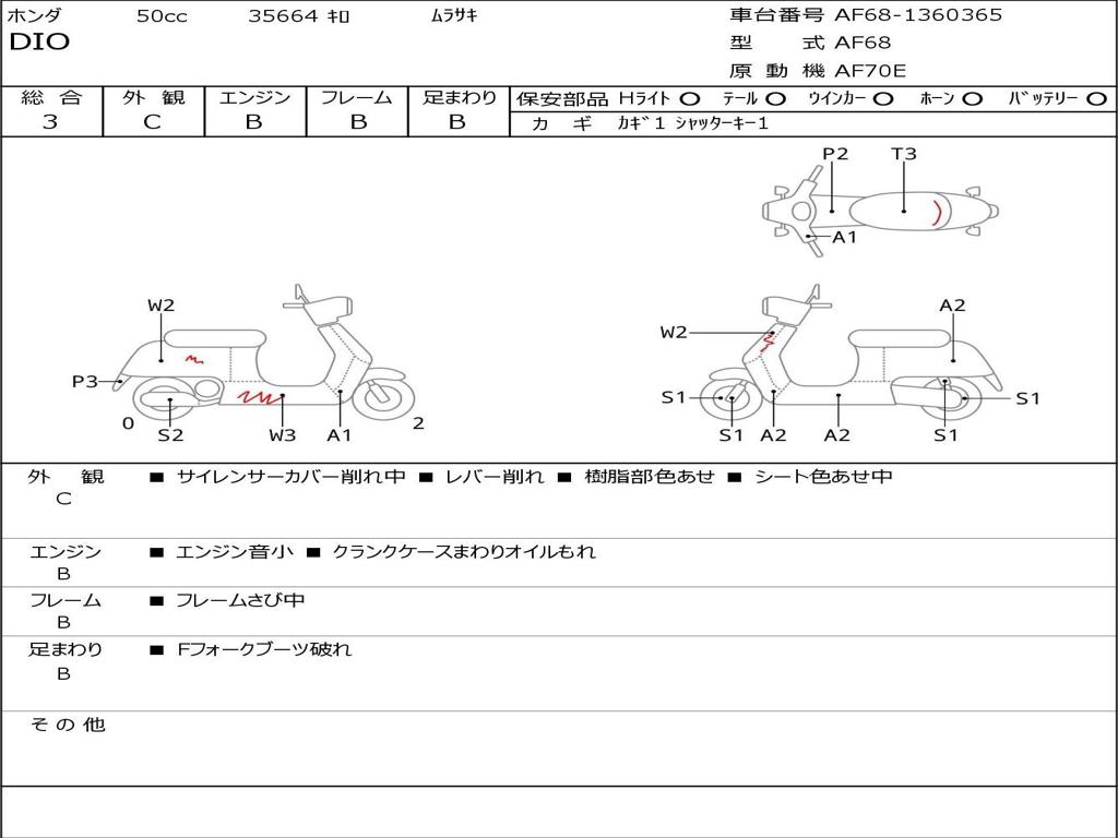 | Номер рамы / VIN | AF68-1360365 |