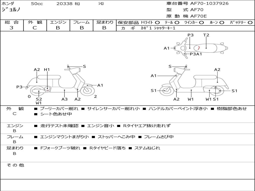 | Номер рамы / VIN | AF70-1037926 |
